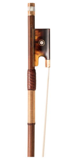 この弓は、この著名な製作家の傑出した一品。金と鼈甲という希少な装飾。柔軟性に富み、制御が容易。様々な運弓法もたやすくこなせ、深い音色を奏でる。